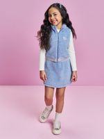 Com detalhes que encantam, o conjunto apresenta um elástico decorativo personalizado na cintura da saia e na barra do colete, proporcionando um ajuste confortável e um acabamento moderno. A textura do pelo carneirinho, em harmonia com o design clean e lúdico, transforma este conjunto na escolha perfeita para passeios em família, festas de aniversário ou viagens para destinos mais frios. Para um look completo e cheio de estilo, combine com uma meia-calça grossa e botinhas de cano curto; o colete também pode ser usado separadamente sobre outras blusas, multiplicando as opções de uso no guarda-roupa da pequena."