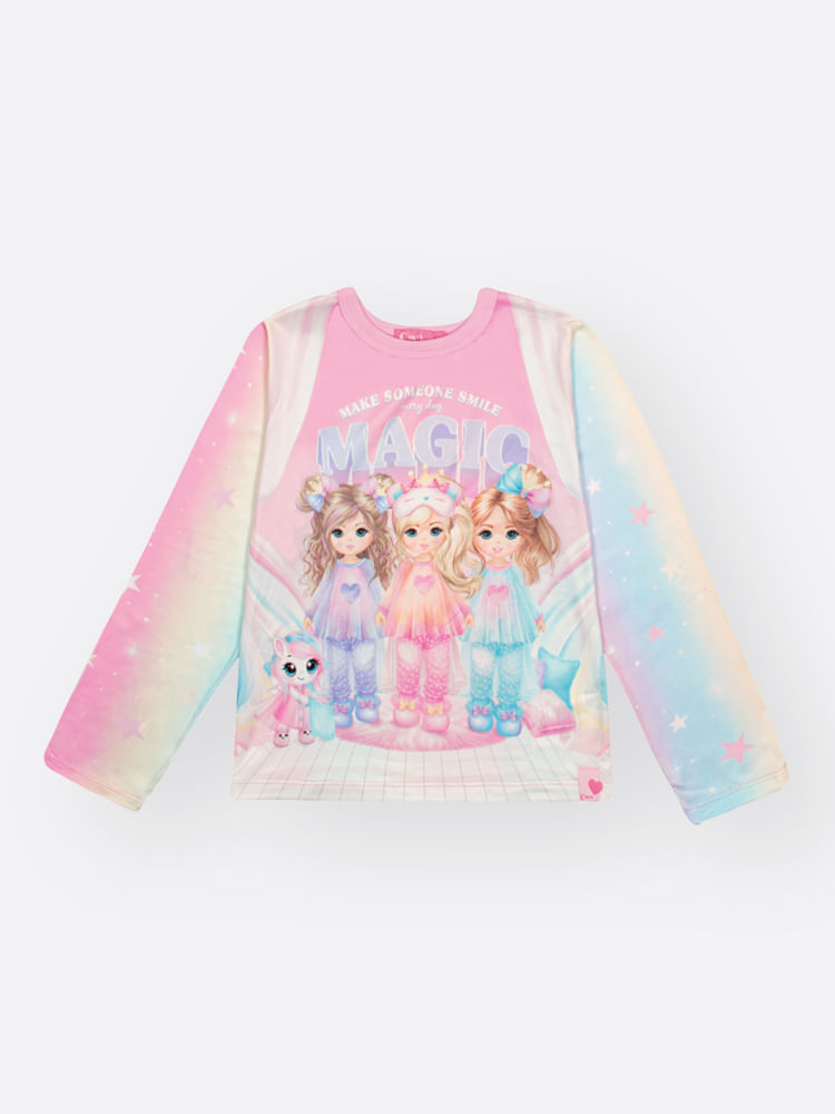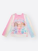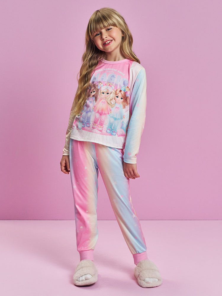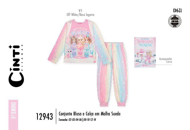 "Este encantador conjunto infantil feminino da coleção Inverno 2026 é a escolha perfeita para quem busca o máximo de conforto com um toque aveludado irresistível. Confeccionado inteiramente em malha suede, o conjunto oferece uma textura extremamente macia e aconchegante, ideal para proteger as pequenas com leveza nos dias mais frescos. A blusa de manga longa destaca-se por sua estampa frontal lúdica e delicada, que se harmoniza com a padronagem rotativa presente nas mangas e em toda a calça, criando um visual coordenado, doce e cheio de personalidade.