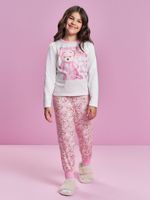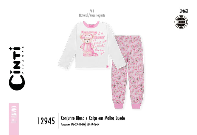 "Este adorável conjunto infantil feminino da coleção Inverno 2026 é a escolha ideal para as mamães que buscam o máximo de maciez e um visual delicado para o dia a dia. Confeccionado em malha suede, o conjunto proporciona um toque aveludado único e uma sensação de aconchego térmico incomparável para os dias mais frescos. A blusa de manga longa conta com uma estampa frontal lúdica e encantadora, enquanto a calça exibe uma padronagem rotativa com temas doces e divertidos, criando um look coordenado e cheio de estilo.