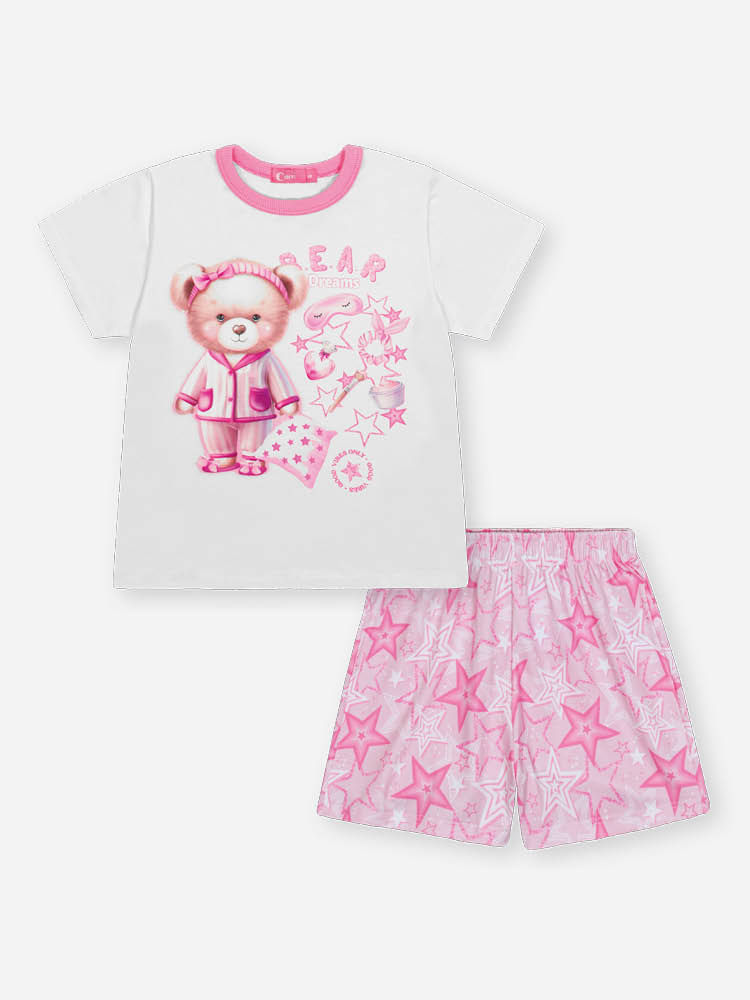 Desenvolvido para garantir o máximo bem-estar, o conjunto possui acabamentos cuidadosos, como o decote em ribana para um ajuste confortável e cós com elástico rebatido, que assegura praticidade ao vestir e liberdade total de movimentos. Este conjunto é a opção perfeita para passeios ao ar livre, idas à escola ou tardes de diversão em família. Para um visual completo nos dias de clima ameno, combine com tênis casuais e uma jaqueta jeans; se a temperatura cair, uma meia-calça e um cardigã garantem que a pequena continue estilosa e protegida com muita doçura."