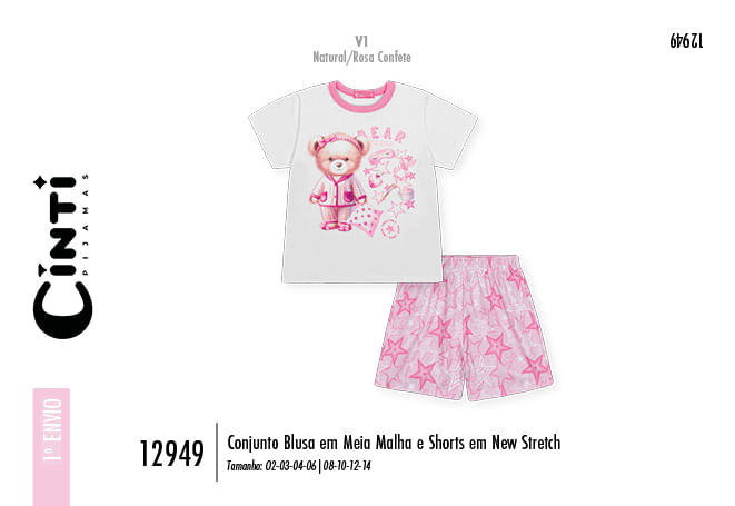 "Este encantador conjunto infantil feminino da coleção Inverno 2026 é a escolha ideal para compor um lookinho prático, alegre e cheio de movimento. A blusa, confeccionada em meia malha de toque suave, destaca-se por sua estampa frontal lúdica e delicada, que traz o frescor da estação para o dia a dia. Complementando o visual, o shorts em tecido New Stretch oferece uma flexibilidade incrível para todas as brincadeiras, apresentando uma estampa rotativa moderna e vibrante que harmoniza perfeitamente com a peça superior.