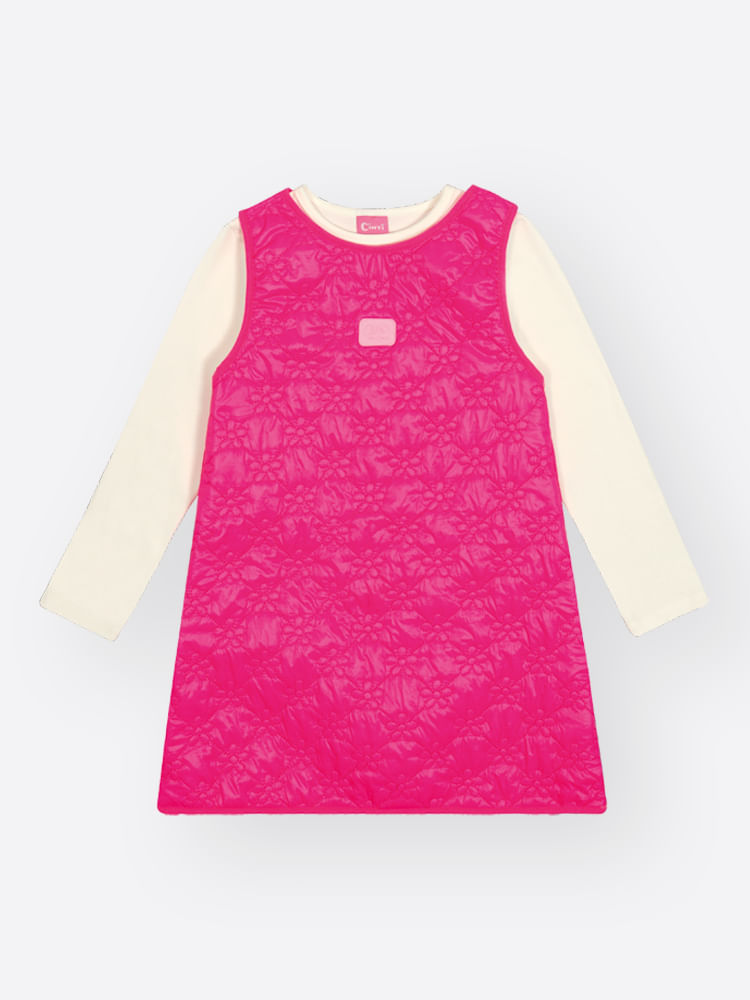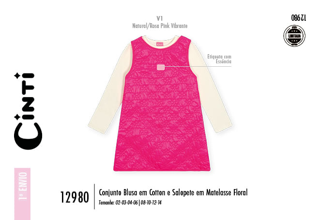"Este Conjunto Infantil de Blusa e Salopete da Cinti é a definição de charme e sofisticação para a temporada de Inverno 2026. Composto por uma blusa em cotton macio e uma salopete em matelassê floral, o conjunto une o toque clássico do relevo acolchoado com a delicadeza de uma padronagem romântica e atemporal. A salopete se destaca pelo acabamento refinado com elástico suave nas cavas e decote, além da exclusiva etiqueta com essência que traz um carinho extra para a peça. A blusa de mangas longas em tom neutro garante o equilíbrio perfeito, criando uma sobreposição elegante e muito confortável para as meninas.