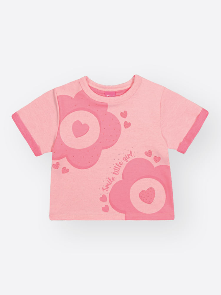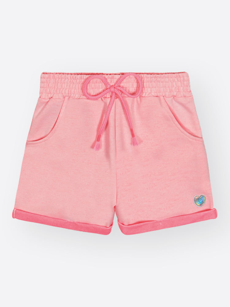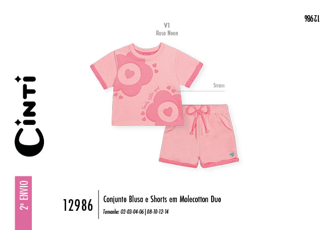 "Este Conjunto Infantil de Blusa e Shorts da Cinti, destaque da coleção Inverno 2026, é a escolha ideal para meninas que buscam um visual moderno com o máximo de conforto. Confeccionado em molecotton duo, o conjunto brinca com as texturas e tonalidades do próprio tecido, utilizando o lado avesso vibrante para criar detalhes de contraste nas barras dobradas da blusa e do shorts. A blusa possui modelagem boxy, garantindo um caimento solto e atual, e é decorada com uma estampa frontal delicada enriquecida por aplicações de strass que conferem um brilho sutil e encantador. O shorts completa o look com praticidade, apresentando bolsos faca arredondados, cós elástico com cadarço em tom neon para um ajuste perfeito e a exclusiva etiqueta de coração holográfica da marca.