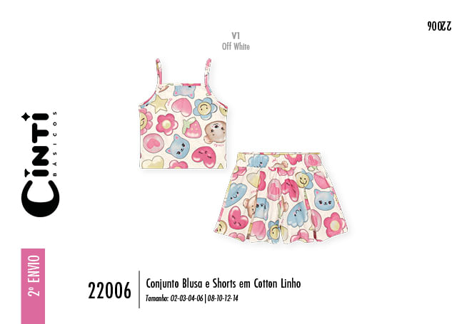 "Este conjunto infantil feminino da Cinti é a escolha ideal para aliar o frescor necessário nos dias de sol ao charme de um visual lúdico e delicado. Confeccionado em cotton linho, o conjunto oferece o toque macio e a respirabilidade do algodão com a sofisticação e o caimento leve do linho, garantindo liberdade total de movimentos para a criança. A blusa de alcinhas, com corte reto e confortável, faz par perfeito com o shorts de modelagem soltinha e cós elástico, que facilita o vestir e proporciona um ajuste seguro durante as brincadeiras.