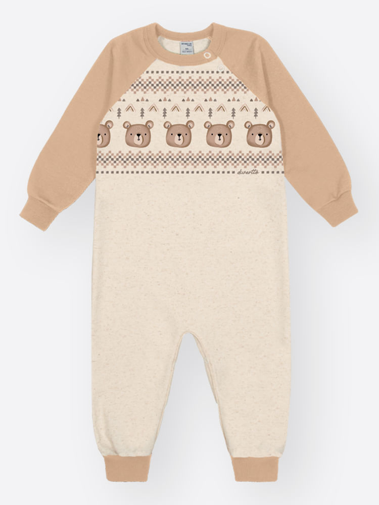 Tamanho:Macacão Bebê Menino Ursinhos Divertto OFF WHITE/BG CAFE LATTE P