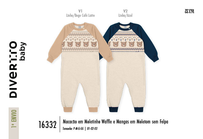 "O Macacão Infantil em Moletinho Waffle e Moletom da coleção Inverno 2026 é a escolha ideal para quem busca uma peça única que equilibra sofisticação e máximo conforto para o bebê. O corpo da peça é confeccionado em moletinho waffle, um tecido com textura diferenciada em relevo que confere um charme moderno, enquanto as mangas em moletom sem felpa garantem leveza e liberdade total de movimentos. O visual lúdico é complementado por uma delicada sublimação de folha, que reforça a temática de natureza da coleção de forma sutil e elegante. Pensado para facilitar a rotina, o macacão possui abertura no peito e no entrepernas com botões de pressão, tornando as trocas muito mais rápidas e práticas. Os punhos e a gola em ribana garantem um ajuste perfeito ao corpo, mantendo o bebê protegido e confortável em qualquer clima. Este macacão é uma peça-chave versátil para o enxoval, adaptando-se a diferentes momentos: - Passeios e Lazer: Por ter um design que mistura texturas, ele dispensa grandes produções; basta combinar com um tênis confortável para um visual moderno em passeios ao shopping ou festinhas de aniversário. - Dia a Dia Aconchegante: É a peça perfeita para manter o bebê arrumadinho e aquecido em casa, permitindo que ele brinque e explore o ambiente sem restrições. - Camadas de Inverno: Nos dias de frio mais intenso, pode ser usado sob uma jaqueta de nylon ou blusão de fleece, garantindo proteção térmica extra sem perder o estilo clássico."