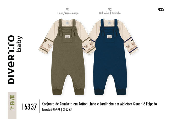 "O Conjunto de Camiseta e Jardineira em Moletom Quadrile da coleção Inverno 2026 é a tradução do rústico refinado para o guarda-roupa dos pequenos exploradores. Este conjunto une a leveza da camiseta em cotton linho à estrutura térmica e aconchegante da jardineira em moletom quadrile felpado, garantindo que o bebê esteja protegido contra o frio com um toque de elegância natural. A camiseta se destaca por sua sublimação delicada de folhas, que evoca a serenidade da natureza, enquanto a jardineira apresenta uma textura quadriculada moderna e encorpada, ideal para os dias de baixa temperatura. Focada na funcionalidade, a peça possui alças ajustáveis que se adaptam ao crescimento do bebê e abertura entrepernas com botões de pressão, facilitando a rotina de trocas com agilidade e conforto. Detalhes como o bolso frontal com pesponto e a charmosa etiqueta decorativa reforçam o cuidado artesanal e o estilo lúdico deste conjunto indispensável. Este conjunto é versátil o suficiente para transitar entre momentos de lazer e eventos sociais: Eventos em Família: O aspecto do cotton linho confere uma sofisticação natural, tornando-o a escolha perfeita para almoços de domingo, batizados casuais ou sessões de fotos. Passeios ao Ar Livre: A jardineira em moletom felpado mantém o calor corporal, sendo ideal para caminhadas no parque ou viagens para destinos mais frios. Composições: Para um look completo de inverno, combine com uma das jaquetas reversíveis ou blusões de fleece da coleção, garantindo uma camada extra de proteção sem perder o charme das alças aparentes."