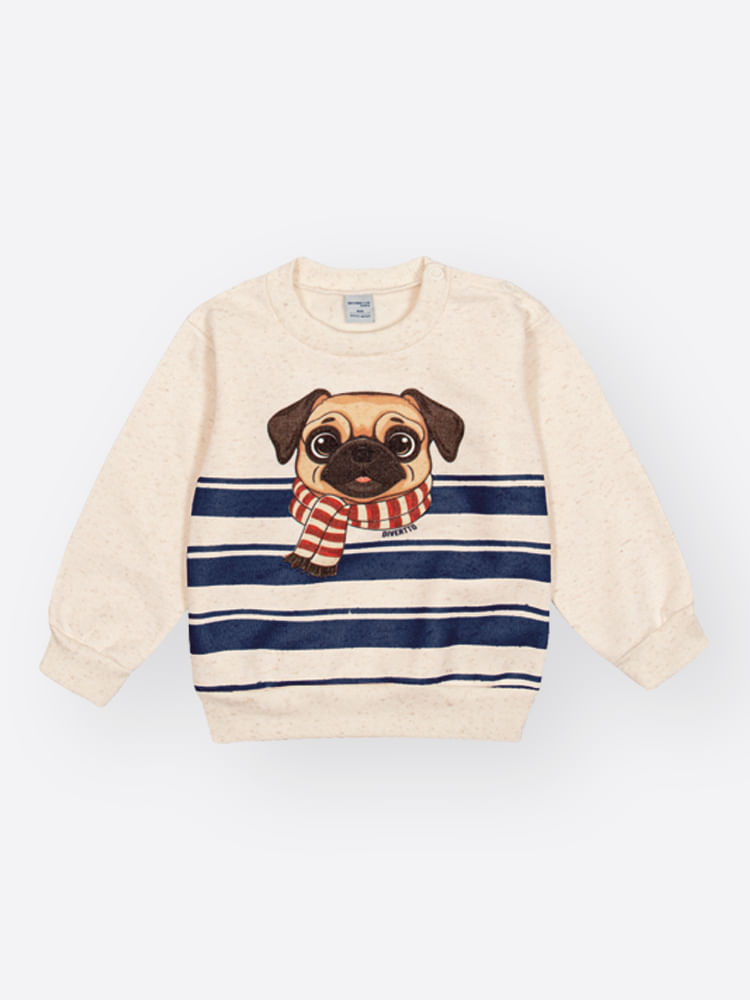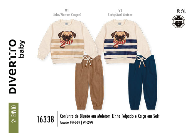 "O Conjunto de Blusão em Moletom Linho Felpado e Calça em Soft da coleção Inverno 2026 é a escolha ideal para os pais que buscam unir a estética refinada do linho com o aquecimento máximo necessário para os dias de frio intenso. O blusão é confeccionado em moletom linho com interior peluciado, garantindo um toque macio e térmico, enquanto a calça em tecido Soft oferece uma camada extra de proteção e aconchego, mantendo o bebê aquecido de forma leve e confortável. O visual se destaca pela sublimação frontal em folha, que traz um ar de serenidade e natureza, complementada por uma etiqueta decorativa ""Dog Authentic"", adicionando um detalhe lúdico e sofisticado à peça. Pensando na praticidade, o blusão conta com abertura no ombro com botões de pressão, facilitando o vestir, e a calça possui cós rebatido com elástico e um charmoso cadarço com ponteiras em courinho, garantindo um ajuste perfeito sem apertar a barriguinha do bebê.
