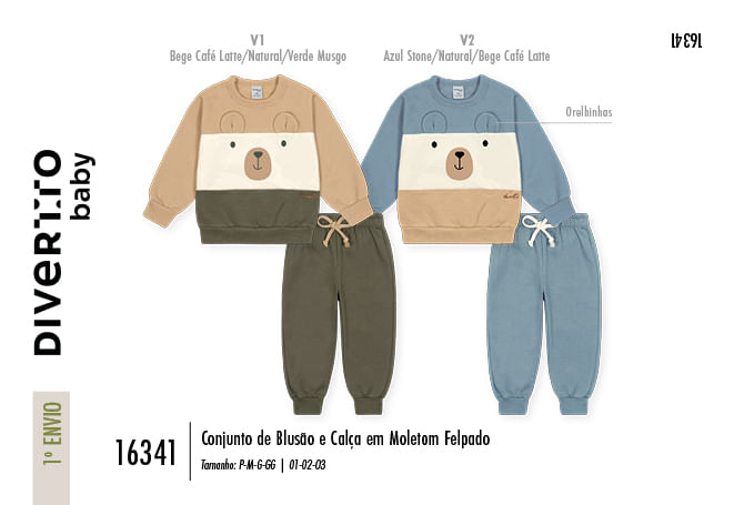 "O Conjunto Infantil de Blusão e Calça em Moletom Felpado da coleção Inverno 2026 é o equilíbrio perfeito entre ludicidade e proteção térmica para os dias mais gelados. Confeccionado em moletom com o interior peluciado, ele envolve o bebê em uma camada de maciez absoluta, mantendo o calor corporal de forma aconchegante. O grande destaque do design fica para o blusão, que traz um toque de diversão com orelhinhas interativas embutidas no recorte e uma charmosa estampa com efeito puff, que confere relevo e textura à peça. Pensando na praticidade de vestir, o blusão possui abertura no ombro com botões de pressão, enquanto a calça oferece ajuste perfeito através do cós elástico rebatido e um delicado cadarço com acabamento em nó. Os acabamentos em punho de ribana tanto nas mangas quanto nas pernas garantem que o conjunto fique no lugar, impedindo a entrada do vento frio enquanto os pequenos exploram o mundo.