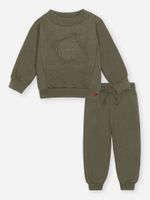 "O Conjunto de Blusão em Moletom Quadrile Felpado e Calça em Moletom Felpado da coleção Inverno 2026 é o combo essencial para quem busca proteção máxima e estilo moderno nos dias de frio rigoroso. O grande diferencial está na rica mistura de texturas: o blusão é confeccionado em moletom quadrile felpado, que oferece um visual encorpado e geométrico, complementado por recortes em moletom liso que trazem um ar esportivo e atual. Para garantir o toque lúdico, a peça conta com um bordado com relevo em EVA e uma sofisticada etiqueta de courinho em formato de placa, elevando o design do agasalho. O conforto é prioridade, com gola em ribana com transpasse para facilitar o vestir, além de punhos e barras que garantem um ajuste seguro, impedindo a passagem do vento. A calça, também em moletom felpado, possui cós elástico rebatido e um cadarço decorativo com linha contraste, garantindo que o bebê esteja livre para se movimentar com total aconchego.