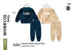 "O Conjunto de Blusão e Calça em Fleece da coleção Inverno 2026 é o verdadeiro abraço em forma de roupa, projetado para manter os bebês aquecidos com a leveza e a maciez que a estação pede. Confeccionado em tecido fleece de alta qualidade, este conjunto possui propriedades térmicas excelentes, sendo ideal para enfrentar as baixas temperaturas sem pesar no corpo do pequeno, garantindo total liberdade para engatinhar e brincar. O design ganha um toque encantador e lúdico com o bordado em pelo ""Hello"", que traz uma textura sensorial fofa e amigável ao blusão. Pensando na praticidade e no conforto absoluto, o modelo conta com uma gola com transpasse em ribana, que facilita o vestir sem incomodar o bebê, além de punhos, barra e cós em ribana que vedam a entrada do frio de forma gentil. O acabamento premium é assinado com uma delicada etiqueta de courinho ""Divertto Clip Baby"", reforçando o cuidado em cada detalhe desta peça feita para durar.