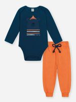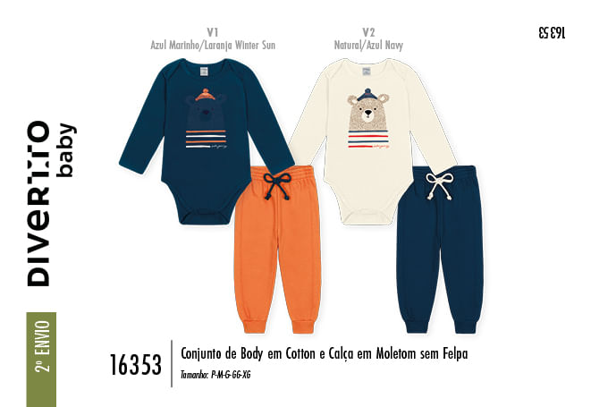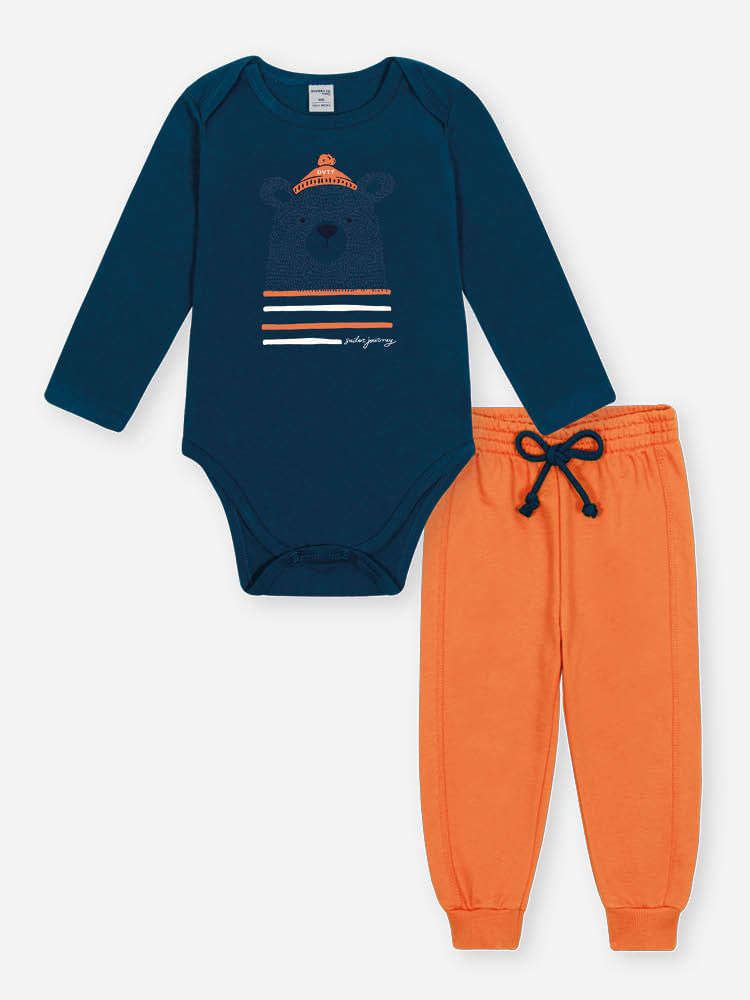 "O Conjunto de Body em Cotton e Calça em Moletom da coleção Inverno 2026 é o duo indispensável para garantir o máximo de conforto e praticidade na rotina dos bebês. O body, confeccionado em cotton macio e respirável, apresenta uma estampa localizada com o moderno efeito puff, que adiciona um relevo emborrachado e divertido à peça, estimulando a curiosidade visual dos pequenos. Para facilitar a vida dos pais, possui abertura estratégica entrepernas com botões de pressão, tornando a troca de fraldas muito mais rápida. A calça em moletom sem felpa é ideal para garantir liberdade total de movimentos, destacando-se pelo design contemporâneo com a lateral vinda para a frente e pespontos detalhados. O ajuste é perfeito e gentil graças ao cós elástico rebatido com cadarço decorativo em nó e aos punhos em ribana, que mantêm a peça no lugar enquanto o bebê descobre o mundo.