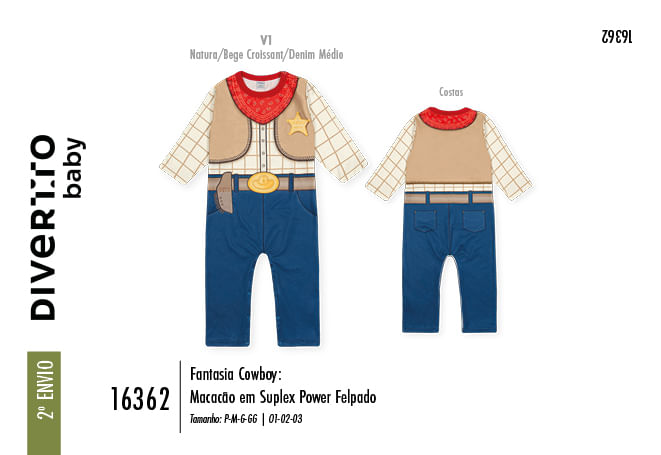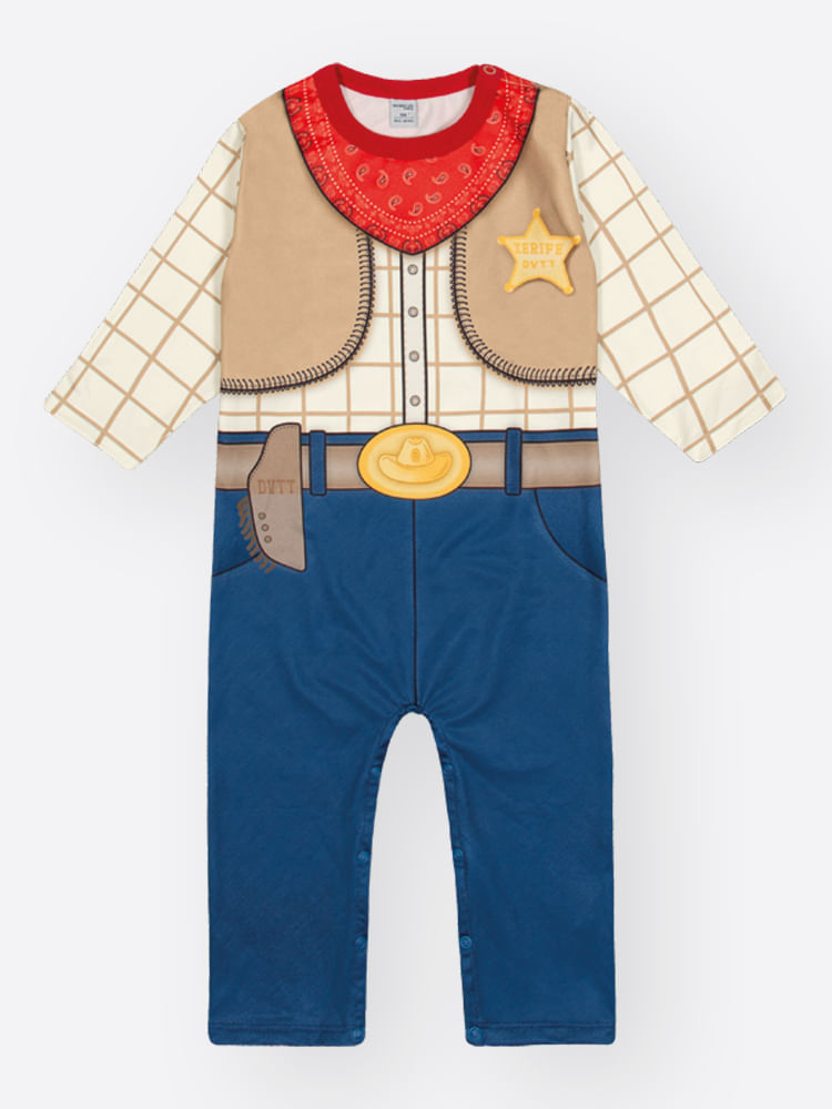 "Prepare o seu pequeno xerife para grandes aventuras com o nosso Macacão Fantasia de Cowboy, a peça ideal para unir o conforto de um pijama à diversão de se fantasiar. Este macacão longo infantil é confeccionado em tecido macio e leve, garantindo total liberdade de movimento para o bebê explorar o ""velho oeste"" da sala de casa ou brilhar em festinhas temáticas e ensaios fotográficos de mesversário. A estampa em sublimação total é rica em detalhes lúdicos, simulando com perfeição o traje de um autêntico cowboy: inclui o colete com a estrela de xerife, uma camisa xadrez clássica, lenço vermelho no pescoço e até o cinto com fivela de chapéu. É uma escolha encantadora para quem busca um look de personagem para bebê sem abrir mão da praticidade, já que a peça conta com abertura no ombro e entrepernas por botões de pressão, facilitando muito a hora da troca.