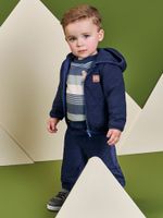 As estampas coordenadas trazem um universo de encanto, com padrões que se estendem pelas mangas e um detalhe localizado na frente, criando um visual harmonioso e moderno. Por combinar materiais nobres como o linho e o veludo, este conjunto é perfeito para ocasiões especiais em dias mais frescos, como batizados informais, almoços de domingo ou aquele passeio charmoso no shopping. Para um look completo de mini gentleman, combine com um sapatinho de couro macio ou um tênis casual em tons neutros. É uma peça indispensável no enxoval de bebê para pais que valorizam a durabilidade, a qualidade dos acabamentos e um estilo atemporal que transborda delicadeza."