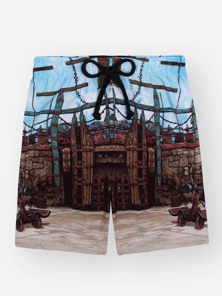 "Ideal para pequenos exploradores que não abrem mão do estilo, a Bermuda Divertto da linha Dragons une a resistência do nylon à flexibilidade do elastano, garantindo liberdade total de movimentos e secagem rápida para os dias de diversão. Com um design sofisticado e voltado para o universo lúdico, a peça apresenta uma estampa digital exclusiva que remete a cenários medievais e fortalezas épicas, trazendo um ar tecnológico e moderno ao visual infantil.