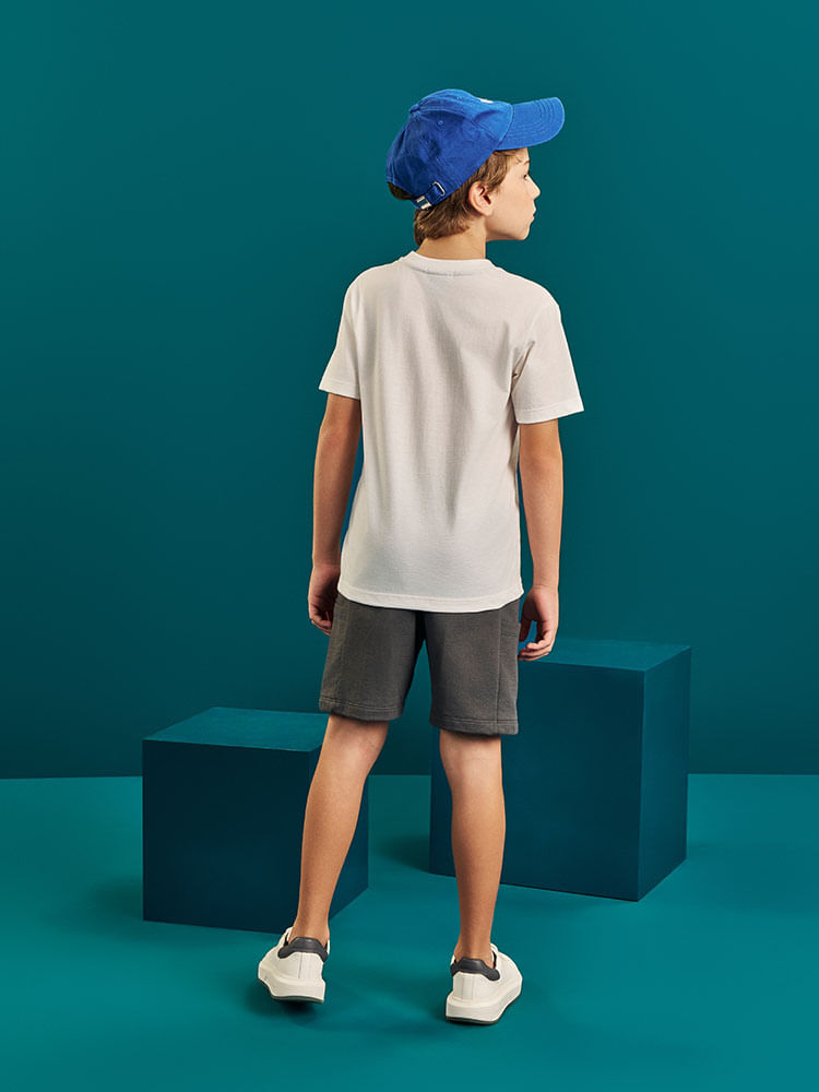 Diferencial: A bermuda em moletom possui cós com cordão funcional, garantindo o ajuste perfeito enquanto o pequeno explora o mundo com total liberdade."