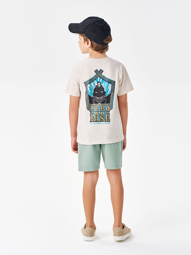 "Este conjunto infantil da Divertto une o conforto essencial do dia a dia ao visual aventureiro inspirado na saga Como Treinar o Seu Dragão. Composto por uma camiseta em meia malha e uma bermuda em moletom, o duo prioriza a liberdade de movimento e o toque macio na pele, garantindo frescor e durabilidade para acompanhar o ritmo dos pequenos.