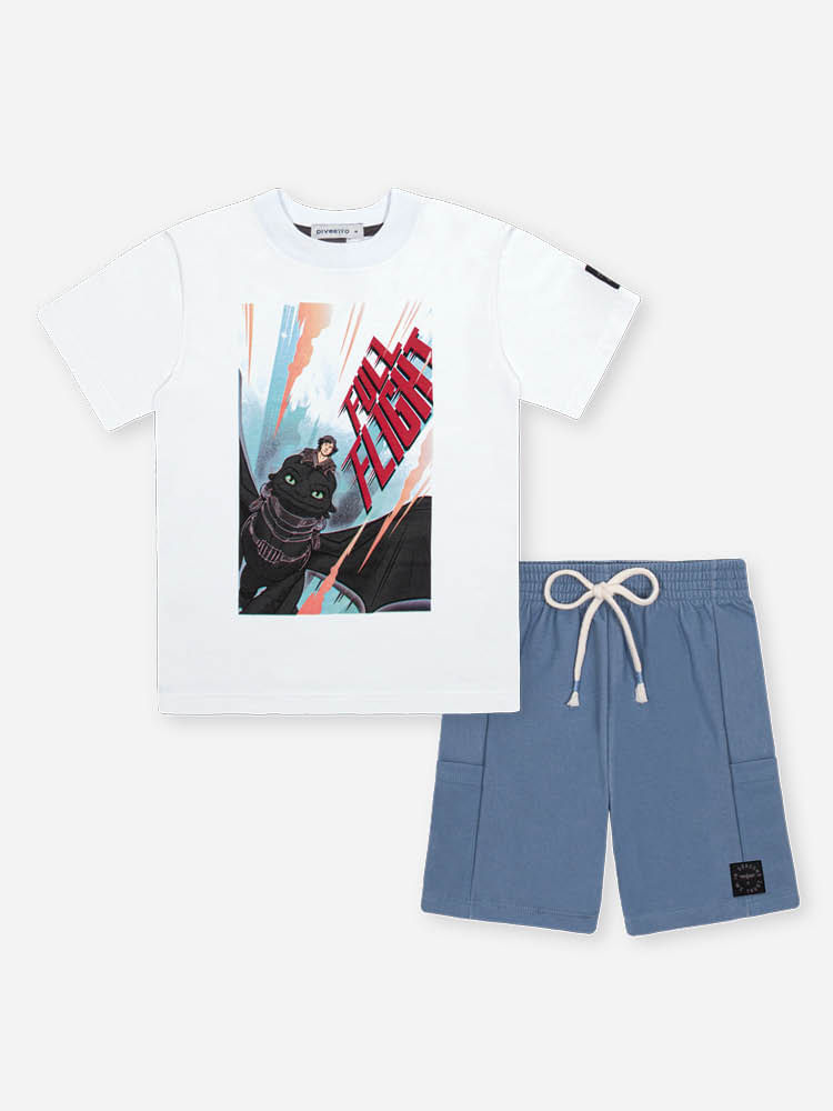 Com estampas exclusivas inspiradas no universo de ""Como Treinar o Seu Dragão"", as peças apresentam artes localizadas impactantes que remetem à aventura e ao voo livre, ideais para o público que busca um visual geek-chic sofisticado. Detalhes como o cós elástico com cordão de ajuste e as etiquetas personalizadas reforçam a identidade fashion e funcional da marca.