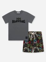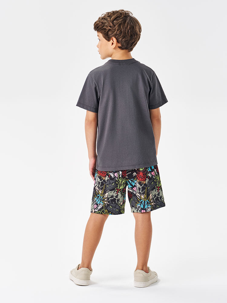 Versatilidade: As peças coordenadas da marca Divertto permitem criar novos looks misturando a camiseta de meia malha com calças jeans ou utilizando a bermuda de moletom com camisas básicas, multiplicando as opções do armário infantil."