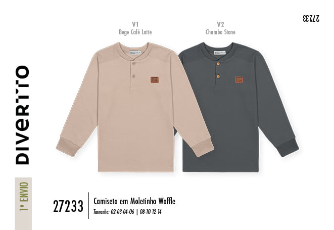 "Esta camiseta de manga longa em moletinho waffle da Divertto é a escolha ideal para pequenos exploradores que não abrem mão do estilo e do conforto. Com uma textura diferenciada que remete ao clássico visual aventureiro, a peça destaca-se pelo seu design funcional e detalhes sofisticados.