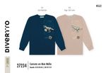 "Esta camiseta de manga longa infantil da Divertto une o toque macio da meia malha com o espírito explorador que todo menino possui. Projetada para oferecer liberdade de movimento e conforto térmico, a peça é um item essencial no guarda-roupa de quem busca durabilidade e estilo para o dia a dia. O destaque fica por conta da estampa em quadro com cromia, que traz figuras de dinossauros em uma composição artística e detalhada. A arte mescla traços lineares com elementos preenchidos, evocando um cenário de expedição e descoberta. O acabamento em ribana na gola e nos punhos garante um ajuste perfeito, mantendo a sofisticação característica da marca. Esta peça é extremamente versátil, ideal para acompanhar as crianças em diferentes jornadas: Combinação: Para um visual aventureiro clássico, combine com calças de sarja em tons terrosos ou jeans com lavagem estonada. Se o clima esfriar, ela funciona perfeitamente sob jaquetas puffer ou coletes. Ocasião: Uma escolha excelente para passeios escolares, idas ao cinema ou encontros casuais com a família. O tecido leve permite que a criança brinque sem restrições, mantendo o visual arrumado. Dica de Uso: Por ser uma peça de meia malha de alta qualidade, ela é ideal para a meia-estação, podendo ser usada sozinha ou como base para sobreposições em dias mais rigorosos."