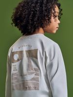 O modelo destaca-se pelo seu acabamento premium, apresentando gola e punhos talhados em ribana 1x1, que garantem um ajuste confortável e mantêm a peça estruturada por mais tempo. Na parte frontal, um patch emborrachado costurado confere um ar moderno e aventureiro. O grande diferencial está nas costas: uma estampa com efeito 3D retratando um veleiro, que traz profundidade e um visual tecnológico à peça, estimulando a imaginação para grandes expedições marítimas.