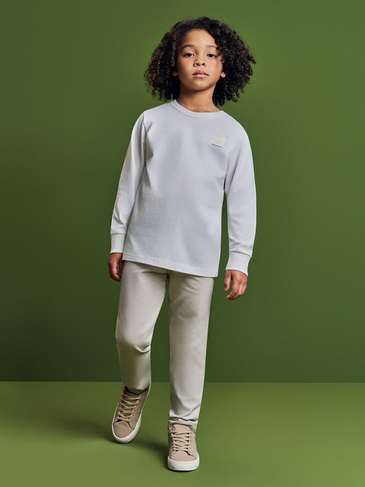 "Esta camiseta de manga longa infantil da Divertto é o equilíbrio perfeito entre sofisticação e o espírito náutico, projetada para pequenos que buscam conforto sem abrir mão do estilo. Confeccionada em meia malha de alta qualidade, a peça oferece um toque macio e excelente respirabilidade, sendo um item indispensável para o guarda-roupa de moda masculina infantil.