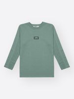 O destaque do design fica por conta dos detalhes técnicos que elevam a peça: o acabamento em ribana no decote e os recortes estratégicos nas mangas trazem uma pegada urbana e esportiva. No peitoral, uma etiqueta decorativa minimalista reforça a identidade autêntica da marca, oferecendo um detalhe visual discreto que faz toda a diferença no acabamento final. É a peça básica, mas nada comum, essencial no guarda-roupa de moda masculina infantil.