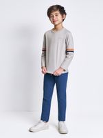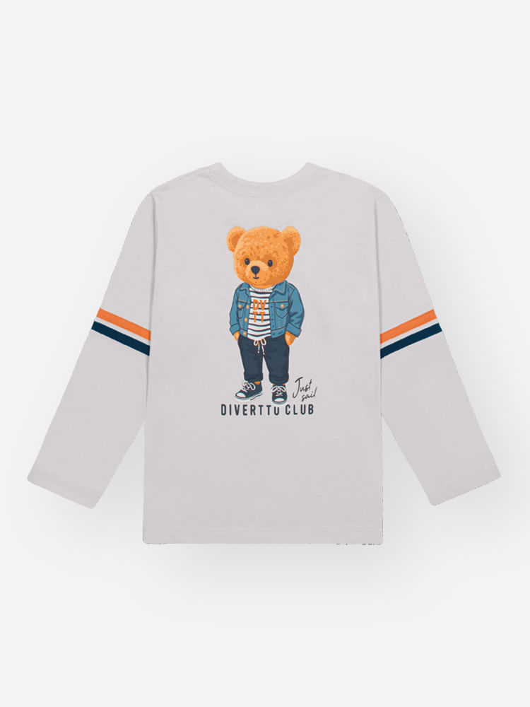 "A Camiseta em Meia Malha da Divertto é a peça indispensável para compor um visual de moda infantil masculina que equilibra conforto absoluto e uma estética sofisticada. Desenvolvida em malha leve e respirável, ela garante liberdade total de movimento, acompanhando o ritmo das maiores descobertas do dia a dia. O design é elevado por detalhes clássicos, como o acabamento em ribana no decote e faixas contrastantes nas mangas, que conferem um toque esportivo e moderno à peça. O charme aventureiro desta camiseta de manga longa está em suas estampas exclusivas: na frente, um letreiro minimalista traz discrição e elegância; já nas costas, a ilustração de um urso com visual urbano reforça a identidade divertida e autêntica da marca. É a escolha ideal para quem procura roupas infantis de qualidade com um design que se destaca em qualquer ocasião. Ocasião: Perfeita para passeios ao entardecer, eventos casuais em família ou para um dia cheio de atividades na escola com muito estilo. Como combinar: Crie um look coordenado utilizando calças de sarja ou uma bermuda de moletom estruturada para manter a pegada aventureira. Dica Divertto: Nos dias mais frescos, esta peça funciona muito bem como base para jaquetas jeans, deixando a estampa das costas surpreender quando a sobreposição é removida."