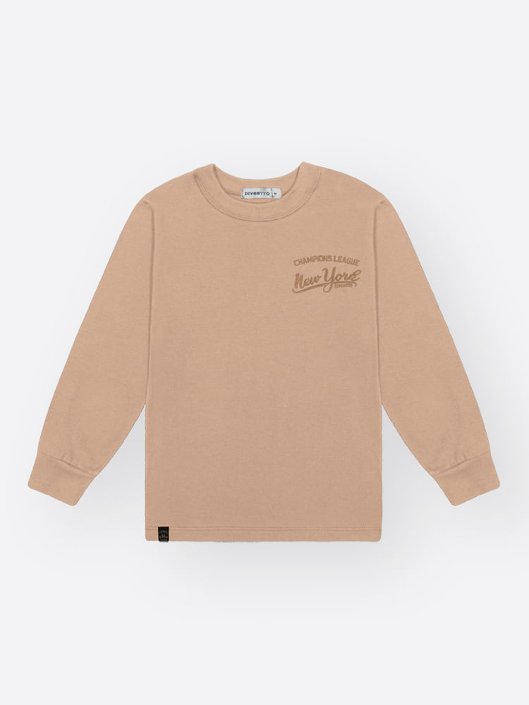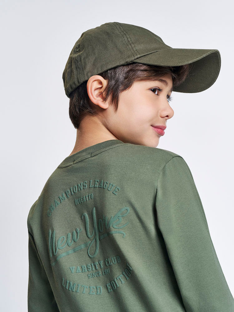 O diferencial desta peça reside em sua sofisticação urbana: a estampa frontal minimalista ganha destaque com o efeito puff, que confere um relevo moderno e tátil à peça. Nas costas, o visual ""Varsity Club"" é reforçado por uma estampa temática inspirada em ligas esportivas, trazendo uma aura de ""campeão"" e aventura ao visual. Uma etiqueta clips aplicada na lateral finaliza o design com o cuidado e a autenticidade característicos da marca Divertto.