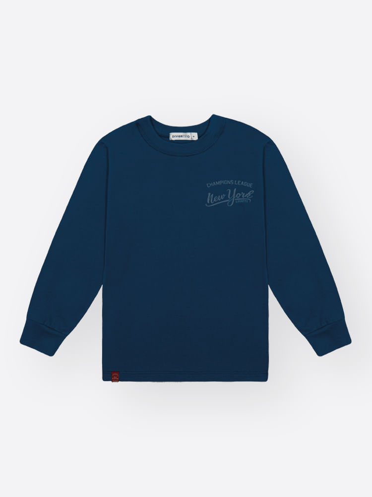 O diferencial desta peça reside em sua sofisticação urbana: a estampa frontal minimalista ganha destaque com o efeito puff, que confere um relevo moderno e tátil à peça. Nas costas, o visual ""Varsity Club"" é reforçado por uma estampa temática inspirada em ligas esportivas, trazendo uma aura de ""campeão"" e aventura ao visual. Uma etiqueta clips aplicada na lateral finaliza o design com o cuidado e a autenticidade característicos da marca Divertto.