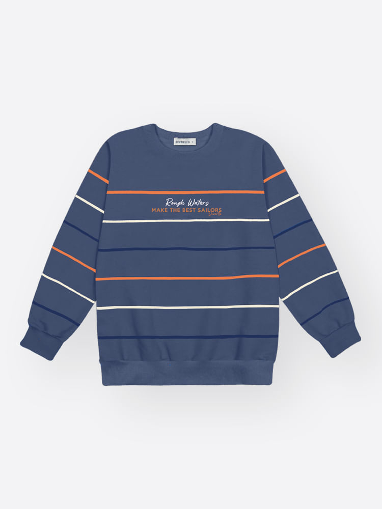 O design é marcado por uma estampa listrada clássica que percorre todo o corpo e mangas, conferindo uma estética aventureira e atemporal. No centro, o destaque fica para a estampa com efeito puff, que adiciona relevo e uma textura moderna à escrita inspiracional. Com acabamentos de alta qualidade, a peça possui friso, punhos e barra em ribana, que garantem o ajuste perfeito ao corpo e maior durabilidade.