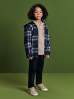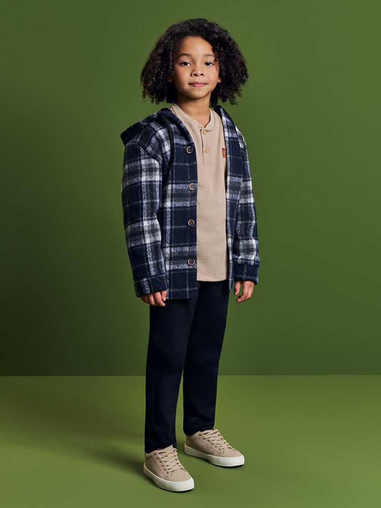 Dica de uso: Por ser uma overshirt, ela é extremamente versátil e funciona como uma jaqueta leve, permitindo sobreposições inteligentes que mantêm o estilo sem perder a praticidade necessária para o dia a dia infantil."