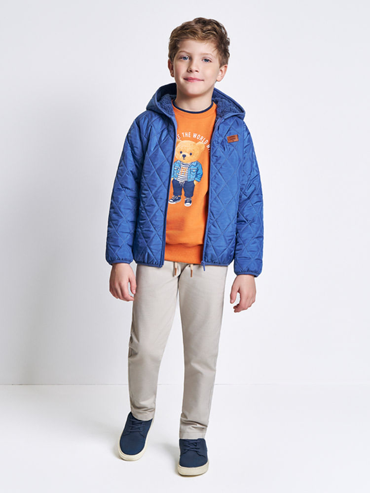 Dica de uso: Por ter uma modelagem mais ampla, ela funciona perfeitamente como terceira camada sobre blusas de tricô ou moletons térmicos, mantendo a liberdade de movimento da criança."