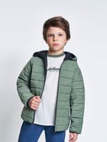 O design se destaca pela estampa matelassê em linhas horizontais, que cria o clássico volume ""puffer"", conferindo um visual moderno e robusto. Com foco na funcionalidade, a peça possui forro em microfibra, capuz protetor e fechamento frontal em zíper de nylon com pesponto reforçado, garantindo que o vento frio não interrompa a diversão.
