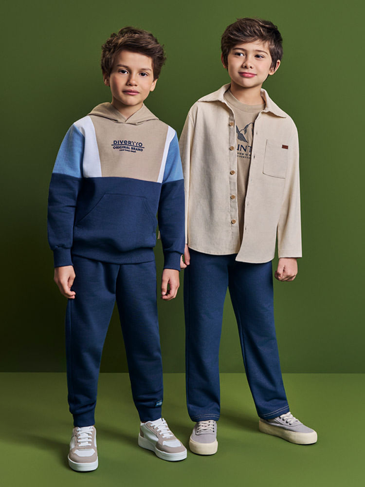 "Prepare o seu pequeno para as expedições mais geladas com o conjunto infantil masculino Divertto, o auge do conforto e estilo na Coleção Inverno 2026. Este duo é confeccionado em moletom felpado, garantindo aquele toque macio e aconchegante que mantém o calor corporal durante as brincadeiras ao ar livre.