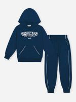 O design destaca-se pela sofisticação nos detalhes: o blusão possui um bolso sobreposto funcional com acabamento em trançador contrastante, enquanto a calça apresenta um detalhe moderno com filete lateral que avança para a frente, conferindo um estilo dinâmico e esportivo. A estampa frontal ganha vida com detalhes em puff, proporcionando um relevo tátil que agrega valor e modernidade à peça. Para garantir o ajuste perfeito e o máximo conforto, o conjunto conta com punhos, barras em ribana e um cós elástico reforçado.
