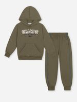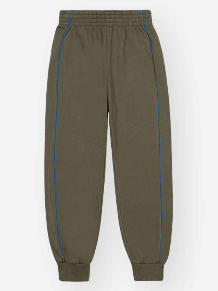 O design destaca-se pela sofisticação nos detalhes: o blusão possui um bolso sobreposto funcional com acabamento em trançador contrastante, enquanto a calça apresenta um detalhe moderno com filete lateral que avança para a frente, conferindo um estilo dinâmico e esportivo. A estampa frontal ganha vida com detalhes em puff, proporcionando um relevo tátil que agrega valor e modernidade à peça. Para garantir o ajuste perfeito e o máximo conforto, o conjunto conta com punhos, barras em ribana e um cós elástico reforçado.