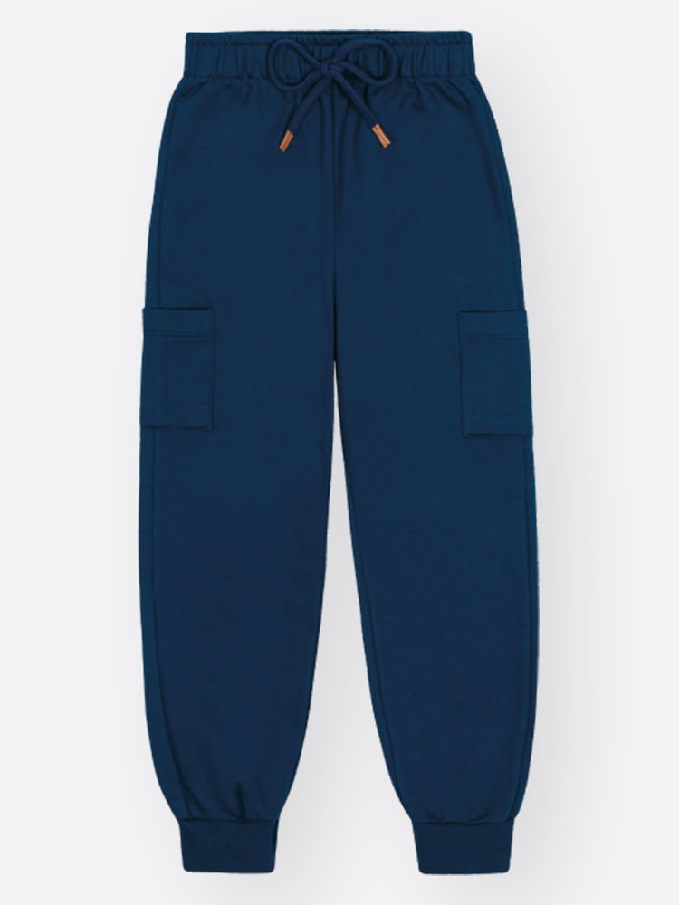 A calça modelo jogger eleva a funcionalidade com bolsos laterais funcionais de estilo utilitário, perfeitos para os pequenos guardarem suas descobertas. O cós elástico rebatido e o cadarço com ponteira em courino garantem segurança e um toque de robustez ao visual.