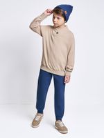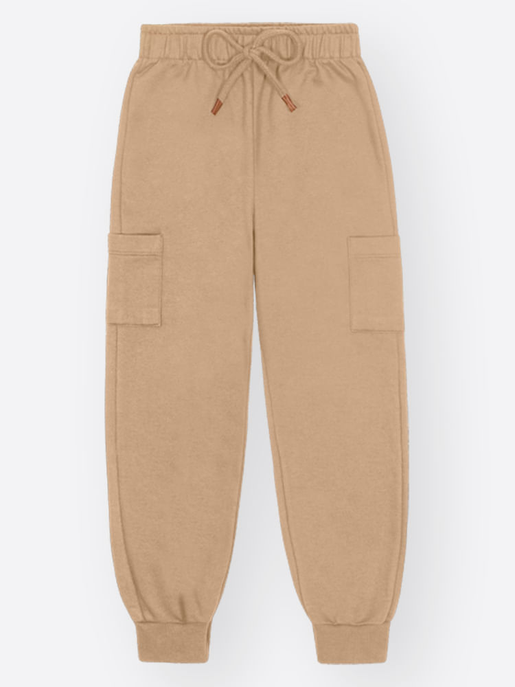 A calça modelo jogger eleva a funcionalidade com bolsos laterais funcionais de estilo utilitário, perfeitos para os pequenos guardarem suas descobertas. O cós elástico rebatido e o cadarço com ponteira em courino garantem segurança e um toque de robustez ao visual.