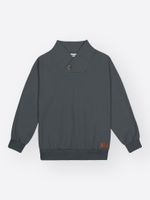 O blusão exibe um design sofisticado com gola dupla transpassada e um botão decorativo, conferindo um ar levemente formal e aventureiro à peça. Sem estampas chamativas, a sofisticação fica por conta da etiqueta decorativa exclusiva e do contraste de texturas. Para garantir o conforto térmico e ajuste ideal, os punhos e a barra são finalizados em ribana de alta qualidade.