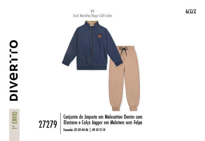 "Para os pequenos exploradores que não abrem mão do estilo mesmo nos dias mais frescos, a Divertto apresenta um conjunto que une a sofisticação do visual denim à liberdade de movimento do streetwear infantil. Ideal para compor um guarda-roupa versátil e durável, este duo é a escolha perfeita para quem busca praticidade sem perder a elegância aventureira.