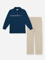 "Este conjunto infantil da marca Divertto é a escolha ideal para aliar o conforto necessário nas brincadeiras ao estilo sofisticado das ocasiões especiais. Composto por uma camisa polo em piquet com elastano e uma calça de modelagem skinny em sarja peletizada com elastano, o look oferece total liberdade de movimento para os pequenos aventureiros, mantendo um caimento impecável e toque macio.