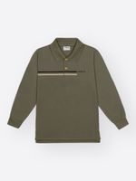 Camisa Polo: Confeccionada em piquet com elastano, possui gola em retilínea e um peitilho simples finalizado com charmosos botões de madeira, que reforçam a estética natural e refinada da peça.