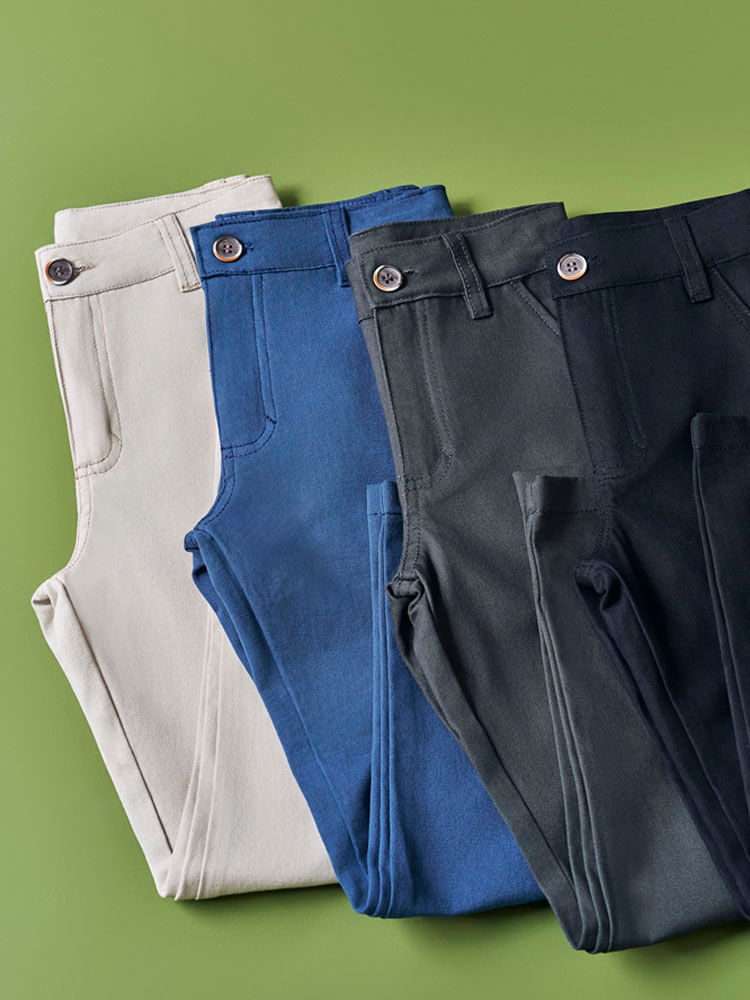 "Esta Calça Skinny Divertto é a união perfeita entre a elegância clássica e a resistência necessária para as grandes descobertas da infância. Confeccionada em sarja peletizada com elastano, a peça entrega um toque aveludado superior e a flexibilidade indispensável para o movimento livre.
