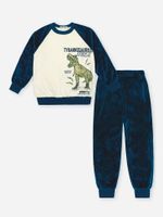 Com um visual sofisticado e lúdico, o destaque do pijama fica para a sublimação localizada de um imponente Tyrannosaurus Rex na parte frontal do blusão. A estampa une o espírito de aventura das expedições pré-históricas com um design moderno, transformando o ato de vestir o pijama em um convite à imaginação e à descoberta.
