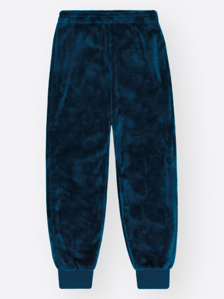O conjunto é composto por um blusão e calça confeccionados em fleece pelúcia, um tecido ultra macio com toque peludinho que retém o calor e garante uma experiência sensorial de puro aconchego. O acabamento em ribana nos punhos, gola e barra assegura que o pijama fique sempre no lugar, mantendo o frio do lado de fora.