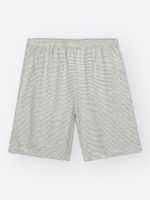 Combinação: Por possuir uma bermuda listrada clássica, pode ser facilmente acompanhado por um par de chinelos confortáveis ou meias de algodão para um visual despojado.