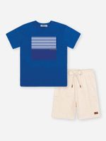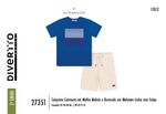 A parte superior é composta por uma camiseta em malha moulinê, que oferece um efeito visual mesclado e um toque extremamente macio sobre a pele. O destaque fica por conta da estampa em quadro com detalhe em puff, conferindo um relevo tátil moderno e cheio de personalidade. Para completar, a bermuda em moletom linho sem felpa entrega uma estética rústica e elegante, garantindo frescor e leveza para os movimentos.