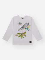 O grande destaque fica para a estampa localizada ""Conquer the Skies"", que traz os dragões mais icônicos da saga em cores vibrantes e traços detalhados, despertando a imaginação e o espírito de bravura. O design conta ainda com gola em ribana para ajuste perfeito e uma etiqueta decorativa exclusiva na barra, reforçando a autenticidade e o acabamento sofisticado da marca Divertto.